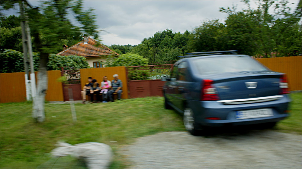 Warum sitzt der Rumäne nur so gerne vor dem Haus an der Straße? Angesichts der Kolonnen von sich durch kleine Orte quälenden LKWs und rasenden SUVs an der Straße zu sitzen? Langeweile? Ein sozialer Trieb? Hinter dem Haus ist es wohl langweilig. Womöglich lauert Arbeit im Garten. Trotzdem, während bei uns zum Feierabend das geschmiedete Gartentor zweifach verschlossen wird, noch ein, zweimal prüfend an den Palisaden gerüttelt und der Wachhund von der Leine gelassen wird, das Anwesen zu verteidigen und sich unsere Sippen verschanzen im Garten hinter dem Haus. Dann ist bei uns geschlossen! Wir reduzieren uns auf uns selbst. Der Rumäne hingegen sitzt auf der Bank vor dem Haus, schaut dem Treiben zu und öffnet sich. Abends sieht man in Rumänien oft die ganze Familie vor dem Haus. Rumänien ist auf den Beinen. Hallo, hier bin ich! Das klappt ganz ohne Facebook. Die Computerstimme „Sie haben Post!“, würde hier unwirklich klingen und unnötig. Der Rumäne sieht, wenn er Post bekommt! Er sitzt ja direkt am Briefkasten! Wen wundert unsere soziale Verarmung? Bei mir vor dem Haus ist wenig los. Ich würde dort auf einer Bank sitzend ins Nichts starren, die Neugier der Nachbarn auf mich lenken, deren Namen ich nicht mal kenne. Würde zudem auch nur auf einen Parkplatz schauen, auf dem mein Auto steht. Kein besonders schönes Auto, nur meines eben.